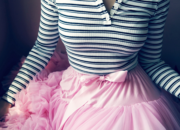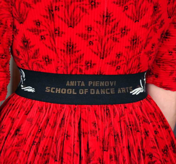 The belt I've had for ages, it's elastic with little dancing figures on the front and sides. The back reads "Anita Pienovi School of Dance Arts" which was a dance school in Oregon, and it's the perfect finishing touch.